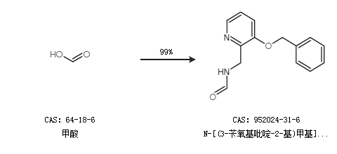 1.通过甲酸合成N-[(3-苄氧基吡啶-2-基)甲基]甲酰胺,收率约99%;