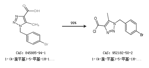 1.通过1-(4-溴苄基)-5-甲基-1H-1,2,3-三唑-4-羧酸合成1-(4-溴-苄基)-5-甲基-1H-[1,2,3]噻唑-4-羰酰氯,收率约99%;
