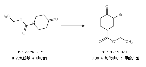 1.通过N-乙氧羰基-4-哌啶酮合成3-溴-4-氧代哌啶-1-甲酸乙酯