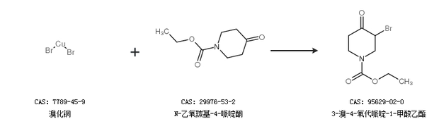 2.通过溴化铜和N-乙氧羰基-4-哌啶酮合成3-溴-4-氧代哌啶-1-甲酸乙酯