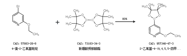 1.通过4-溴-2-乙氧基吡啶和联硼酸频那醇酯合成2-乙氧基-4-(4,4,5,5-四甲基-1,3,2- 二噁硼烷-2-基)-吡啶,收率约80%;