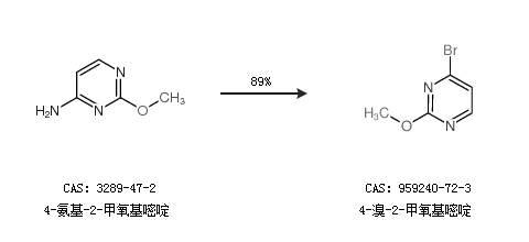 1.通过4-氨基-2-甲氧基嘧啶合成4-溴-2-甲氧基嘧啶,收率约89%;