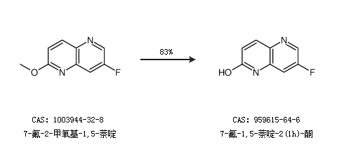 1.通过7-氟-2-甲氧基-1,5-萘啶合成7-氟-1,5-萘啶-2(1h)-酮,收率约83%;