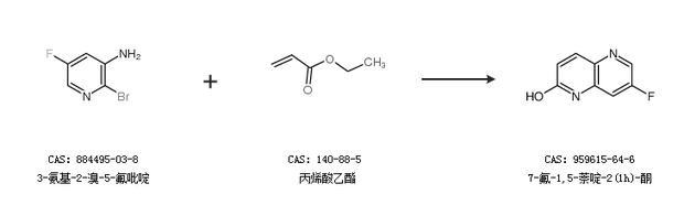 2.通过3-氨基-2-溴-5-氟吡啶和丙烯酸乙酯合成7-氟-1,5-萘啶-2(1h)-酮