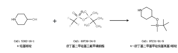 2.通过4-羟基哌啶和叔丁基二甲硅基三氟甲磺酸酯合成4-(叔丁基二甲基甲硅烷基氧基)哌啶
