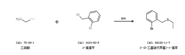 1.通过乙硫醇和2-溴溴苄合成2-(S-乙基硫代甲基)-1-溴苯,收率约96%;