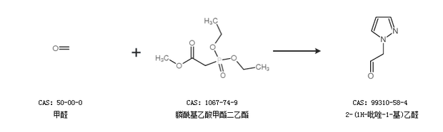 1.通过甲醛和膦酰基乙酸甲酯二乙酯合成2-(1H-吡唑-1-基)乙醛