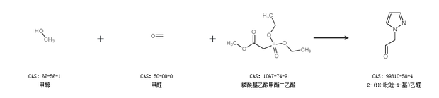 2.通过甲醇、甲醛和膦酰基乙酸甲酯二乙酯合成2-(1H-吡唑-1-基)乙醛