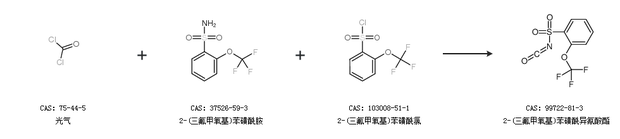 1.通过光气、2-(三氟甲氧基)苯磺酰胺和2-(三氟甲氧基)苯磺酰氯合成2-(三氟甲氧基)苯磺酰异氰酸酯