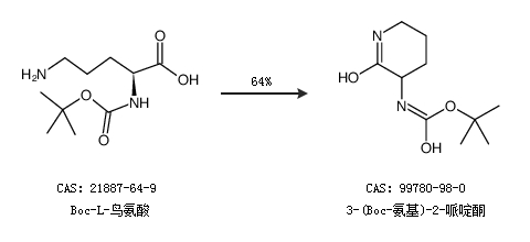 2.通过Boc-L-鸟氨酸合成3-(Boc-氨基)-2-哌啶酮,收率约64%;