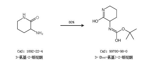 1.通过3-氨基-2-哌啶酮合成3-(Boc-氨基)-2-哌啶酮,收率约80%;