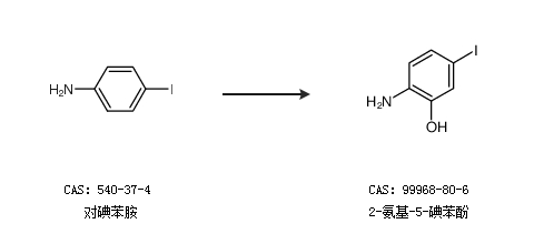1.通过对碘苯胺合成2-氨基-5-碘苯酚
