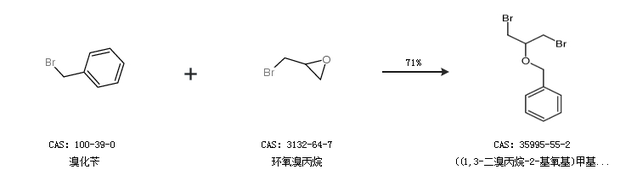 英文别名 (((1,3-dibromopropan-2-yl)oxy)methyl)benzene;2-bromo-1-(bromomethyl)-1-(phenylmethoxy)ethane;1,3-dibromo-2-O-benzyl glycerol;2-benzyloxy-1,3-dibromopropane;([2-Bromo-1-(bromomethyl)ethoxy]methyl)benzene;Benzene,[[2-bromo-1-(bromomethyl)ethoxy]methyl];