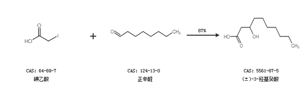 2.通过碘乙酸和正辛醛合成(±)-3-羟基癸酸,收率约87%;