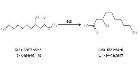 1.通过3-羟基癸酸甲酯合成(±)-3-羟基癸酸,收率约84%;