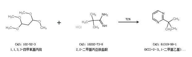 1.通过1,1,3,3-四甲氧基丙烷和2,2-二甲基丙亚胺盐酸合成(9CI)-2-(1,1-二甲基乙基)-嘧啶,收率约72%;
