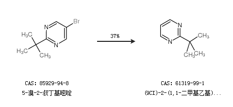 2.通过5-溴-2-叔丁基嘧啶合成(9CI)-2-(1,1-二甲基乙基)-嘧啶,收率约37%;