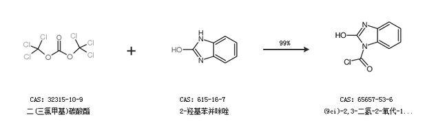 1.通过二(三氯甲基)碳酸酯和2-羟基苯并咪唑合成(9ci)-2,3-二氢-2-氧代-1H-苯并咪唑-1-羰酰氯,收率约99%;