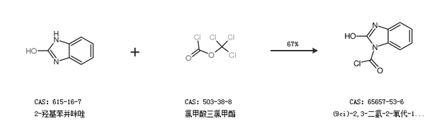 2.通过2-羟基苯并咪唑和氯甲酸三氯甲酯合成(9ci)-2,3-二氢-2-氧代-1H-苯并咪唑-1-羰酰氯,收率约67%;