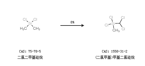 2.通过二氯二甲基硅烷合成(二氯甲基)甲基二氯硅烷,收率约8%;