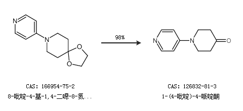 1.通过8-吡啶-4-基-1,4-二噁-8-氮杂螺[4.5]癸烷合成1-(4-吡啶)-4-哌啶酮,收率约98%;