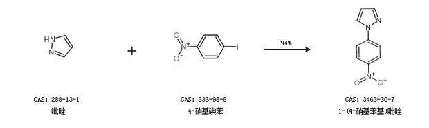 1.通过吡唑和4-硝基碘苯合成1-(4-硝基苯基)吡唑,收率约94%;