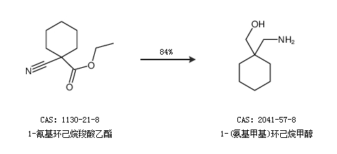 1.通过1-氰基环己烷羧酸乙酯合成1-(氨基甲基)环己烷甲醇,收率约84%;