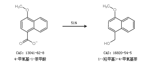 2.通过4-甲氧基-1-萘甲酸合成1-(羟甲基)-4-甲氧基萘,收率约51%;