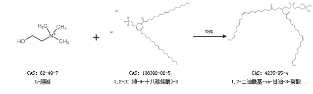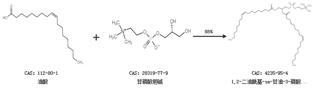 1.通过油酸和甘磷酸胆碱合成1,2-二油酰基-sn-甘油-3-磷酸胆碱,收率约88%;