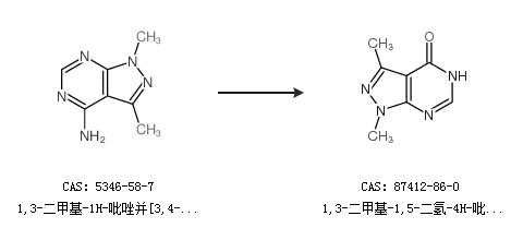 中文名称 1,3-二甲基-1,5-二氢-4H-吡唑并-[3,4-d]嘧啶-4-酮