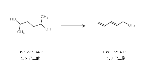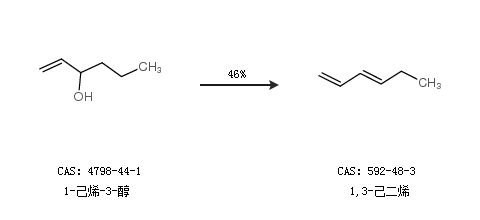 1.通过1-己烯-3-醇合成1,3-己二烯,收率约46%;