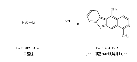 1.通过甲基锂合成1,5-二甲基-6H-吡啶并[4,3-b]咔唑,收率约55%;