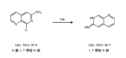 1.通过8-溴-1,7-萘啶-6-胺合成1,7-萘啶-6-胺,收率约74%;