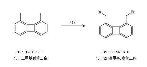 1.通过1,8-二甲基联苯二胺合成1,8-双(溴甲基)联苯二胺,收率约49%;