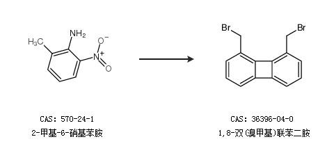 2.通过2-甲基-6-硝基苯胺合成1,8-双(溴甲基)联苯二胺