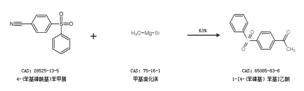 1.通过4-(苯基磺酰基)苯甲腈和甲基溴化镁合成1-[4-(苯磺基)苯基]乙酮,收率约63%;