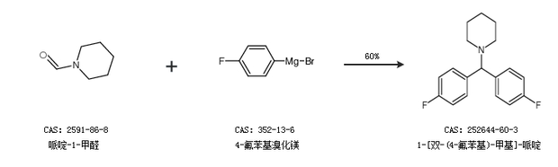 1.通过哌啶-1-甲醛和4-氟苯基溴化镁合成1-[双-(4-氟苯基)-甲基]-哌啶,收率约60%;