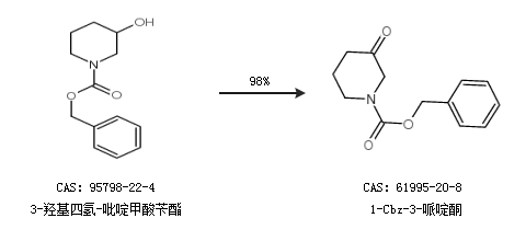 1.通过3-羟基四氢-吡啶甲酸苄酯合成1-Cbz-3-哌啶酮,收率约98%;