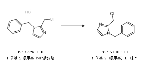 英文别名 1-Benzyl-2-chlormethyl-1H-imidazol;N-benzyl-2-chloromethylimidazole;1-benzyl-2-imidazolylmethyl chloride;1-benzylimidazole-2-ylmethylene chloride;N-Benzyl-2-aminomethyl-imidazol;1-benzyl-2-chloromethyl-1H-imidazole;