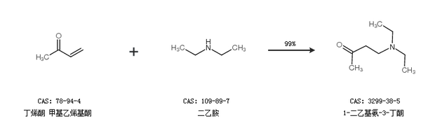 1.通过丁烯酮 甲基乙烯基酮和二乙胺合成1-二乙基氨-3-丁酮,收率约99%;