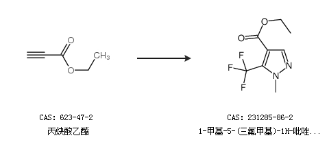 1.通过丙炔酸乙酯合成1-甲基-5-(三氟甲基)-1H-吡唑-4-羧酸乙酯