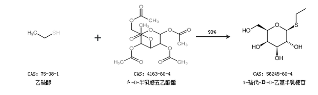 2.通过乙硫醇和β-D-半乳糖五乙酸酯合成1-硫代-Β-D-乙基半乳糖苷,收率约90%;