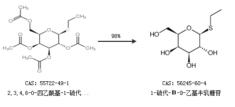 1.通过2,3,4,6-O-四乙酰基-1-硫代-Β-D-乙基半乳糖苷合成1-硫代-Β-D-乙基半乳糖苷,收率约98%;