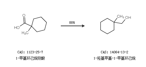 1.通过1-甲基环己烷羧酸合成1-羟基甲基-1-甲基环己烷,收率约88%;