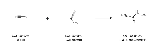 1.通过氰化钾和异硫氰酸甲酯合成1-氰-N-甲基硫代甲酰胺