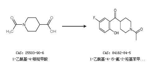 2.通过1-乙酰基-4-哌啶甲酸合成1-乙酰基-4-(5-氟-2-羟基苯甲酰基)哌啶