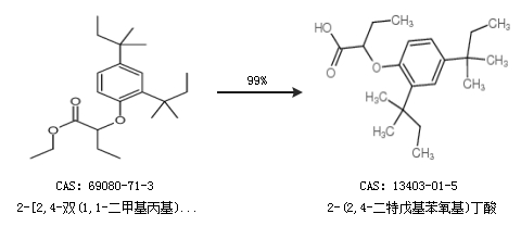 1.通过2-[2,4-双(1,1-二甲基丙基)苯氧基]丁酸乙酯合成2-(2,4-二特戊基苯氧基)丁酸,收率约99%;