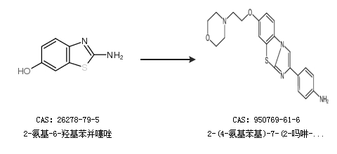 2.通过2-氨基-6-羟基苯并噻唑合成2-(4-氨基苯基)-7-(2-吗啉-4-基-乙氧基)咪唑并[2,1-b]-[1,3]苯并噻唑