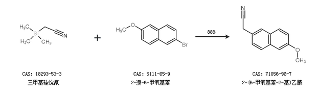 1.通过三甲基硅烷氰和2-溴-6-甲氧基萘合成2-(6-甲氧基萘-2-基)乙腈,收率约88%;