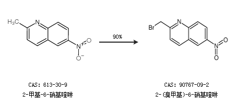 1.通过2-甲基-6-硝基喹啉合成2-(溴甲基)-6-硝基喹啉,收率约90%;